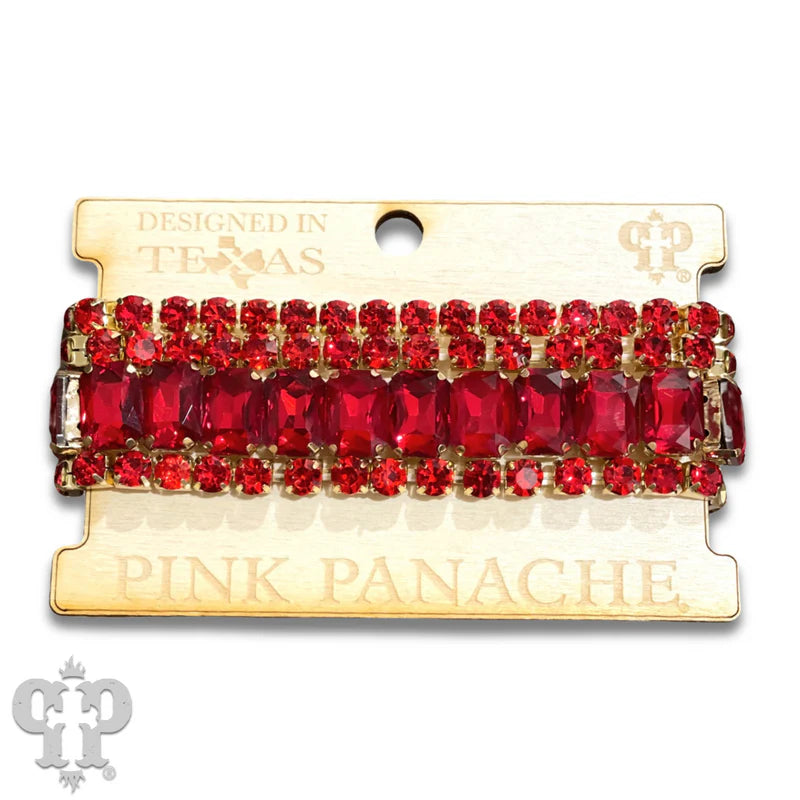 This bracelet boasts four strands of shiny, sparkly rhinestones in a metal prong setting. It's stretchy for easy slip-on.