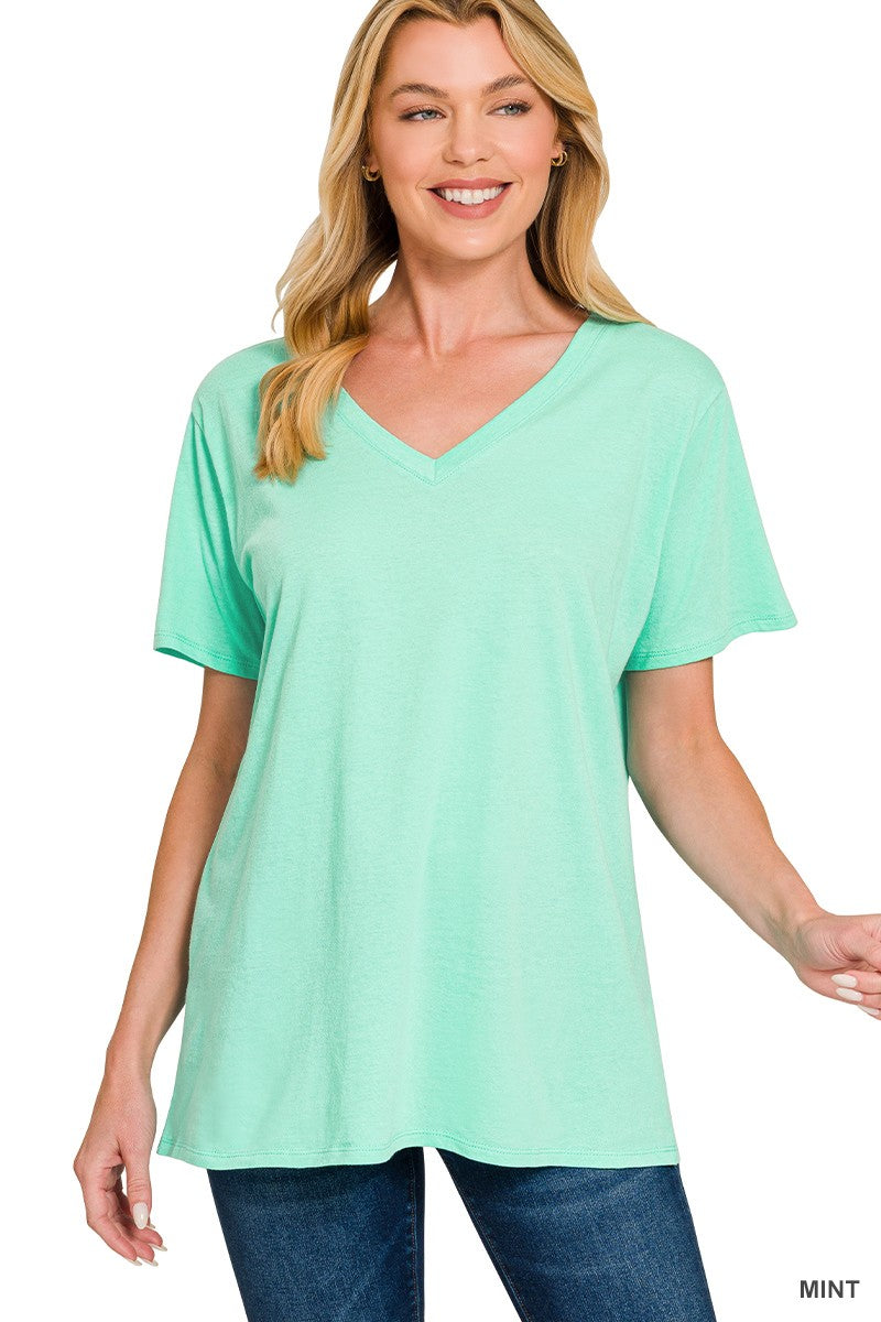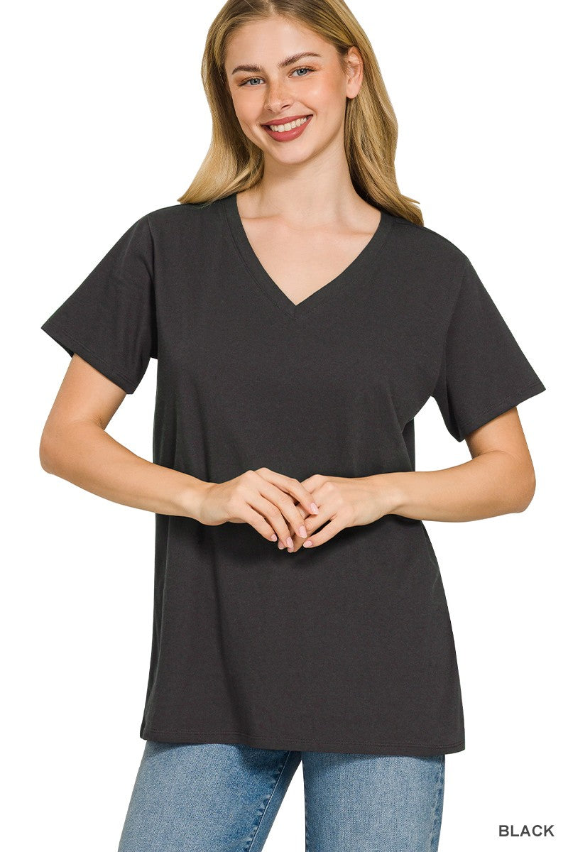Meet the tee you'll reach for again and again. This Cotton Boyfriend V-Neck Tee is made from lightweight 100% cotton for breathable comfort you can wear all day long. Designed with a relaxed boyfriend fit and classic v-neckline, it gives you that effortless, laid-back look that pairs perfectly with denim, shorts, or your favorite lounge bottoms. It’s the kind of everyday basic every closet needs—simple, flattering, and easy to style year-round.