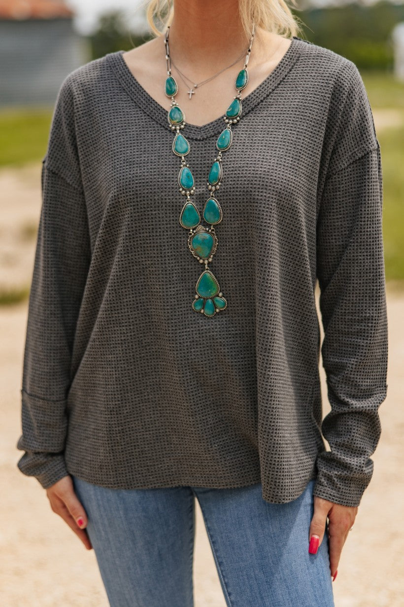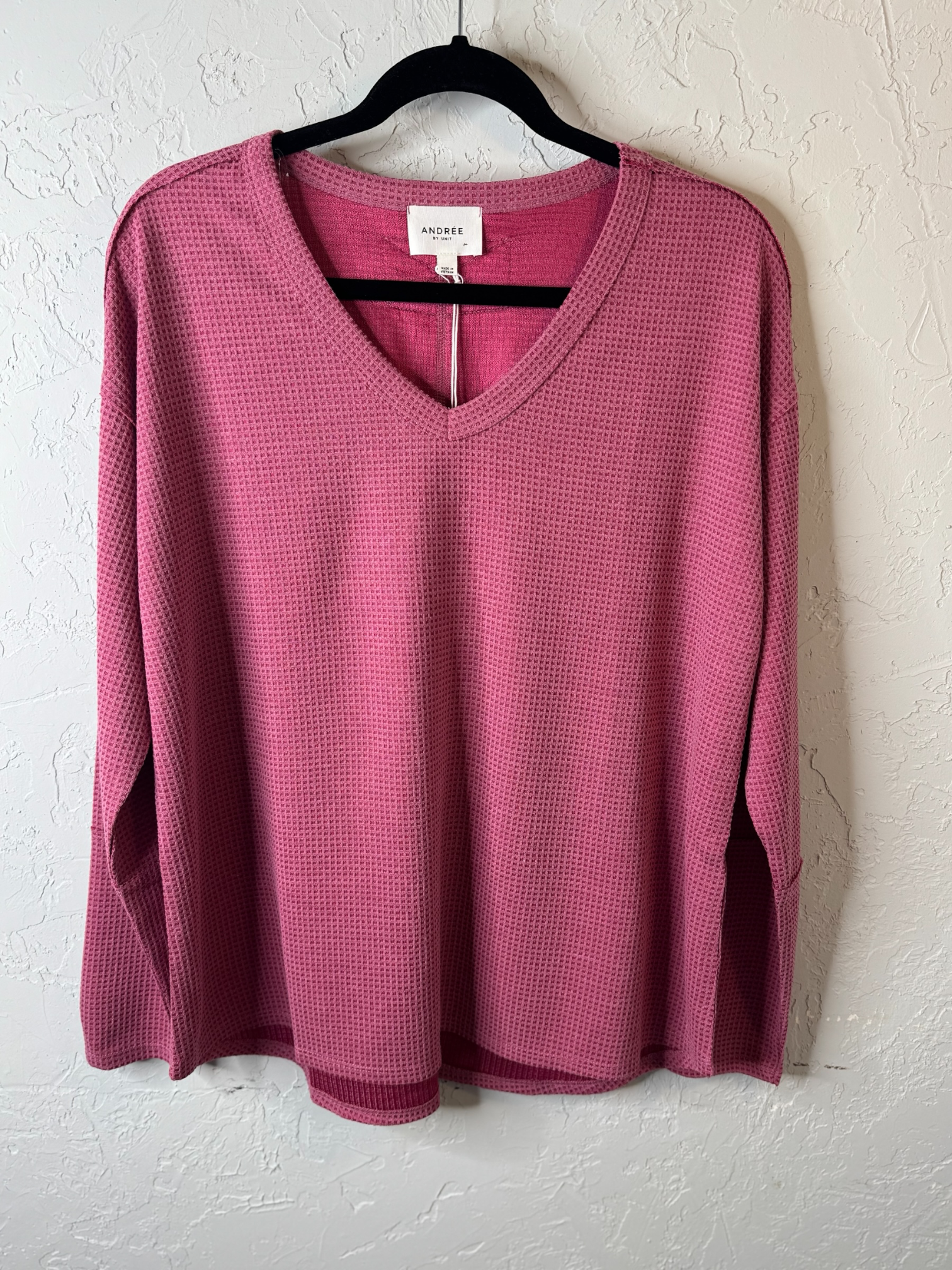 Experience all-day comfort and warmth with the long sleeve V-neck thermal top. Made from soft, stretchy thermal knit fabric, it offers a lightweight yet cozy layer that’s perfect for wearing alone or under your favorite outfits. The non-sheer material ensures coverage while maintaining a sleek, stylish look. Designed to move with you, this top keeps you warm without sacrificing comfort or style. 77% Polyester 23% Rayon.